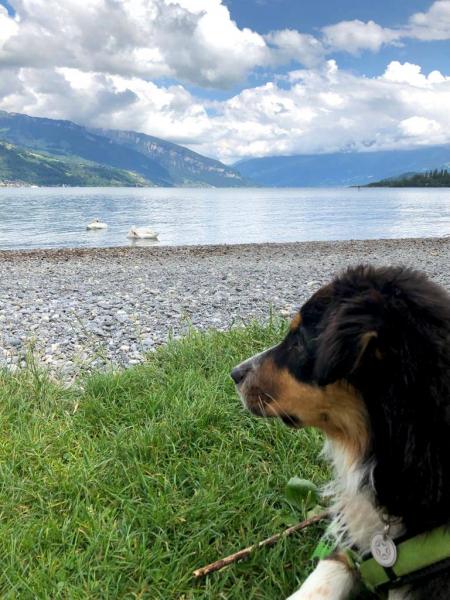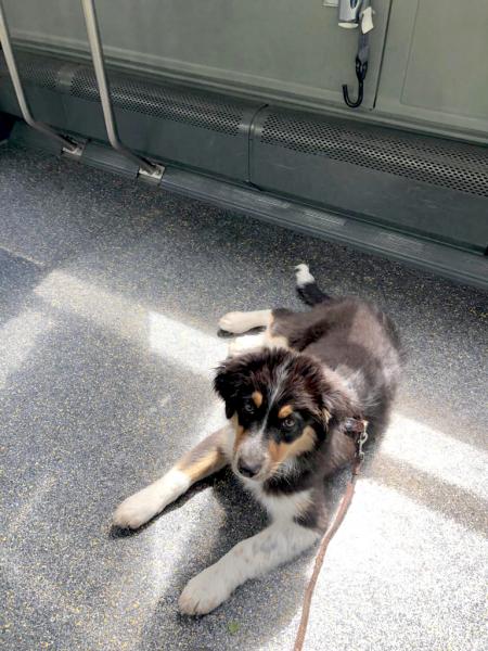 «Ein bisschen Nervös war ich, als wir das erste Mal mit der Standseilbahn fuhren – Oben angekommen gab es für mich ein feines Rinderohr. Weil ich so eine Gute war.» Kymba lernt alles mögliche kennen, um danach im Alltag überall mitdabei sein zu können.