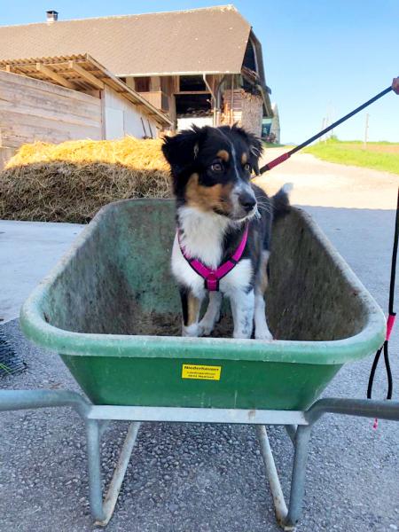 Kymba erlebt den Bauernhof hautnah und darf immer dabei sein.